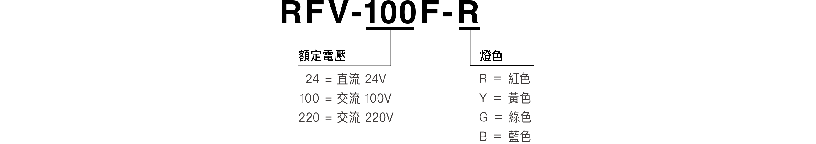 RFV-100F-R/Y/G/B | 交流 100V | 紅 / 黃 / 綠 / 藍 |