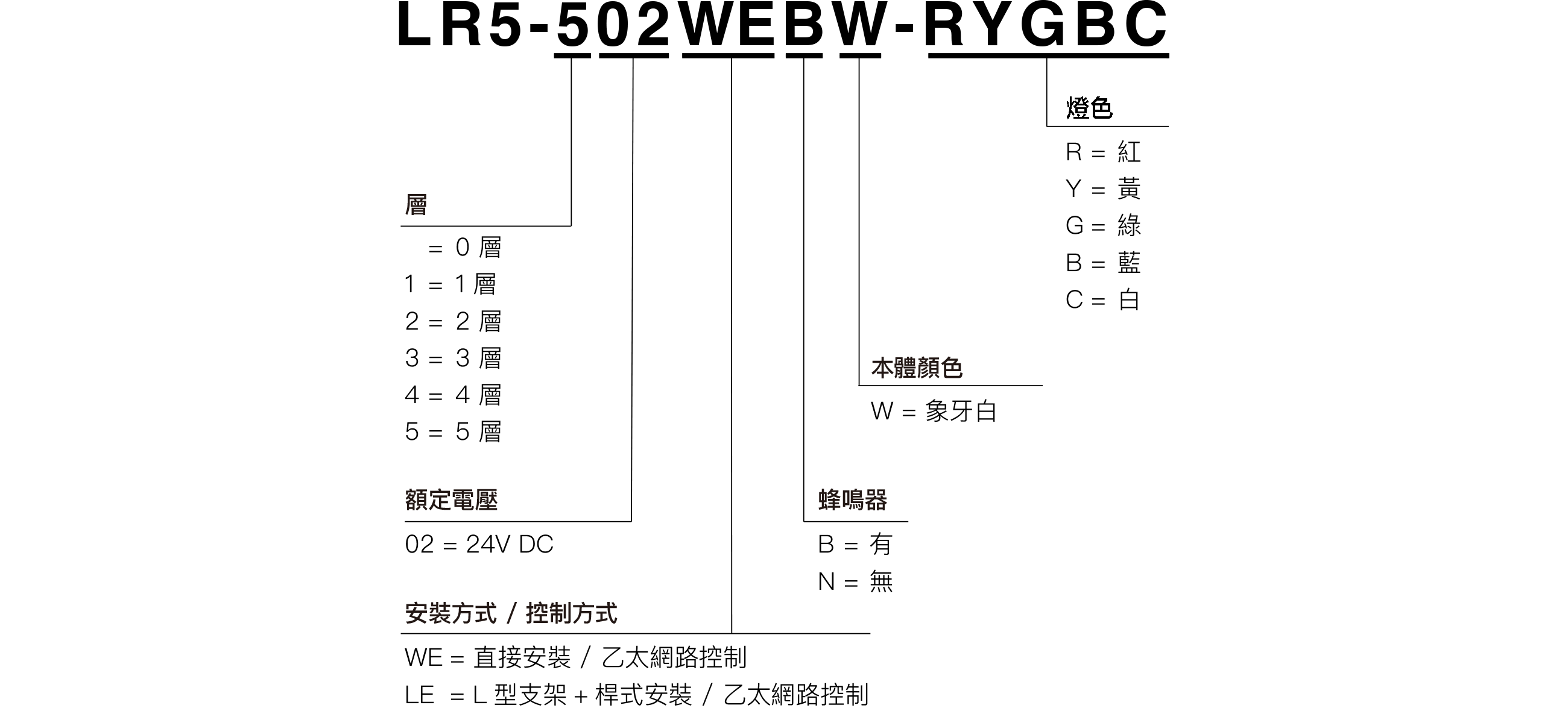 LR5-202LENW(2層_桿式安裝_無蜂鳴器)